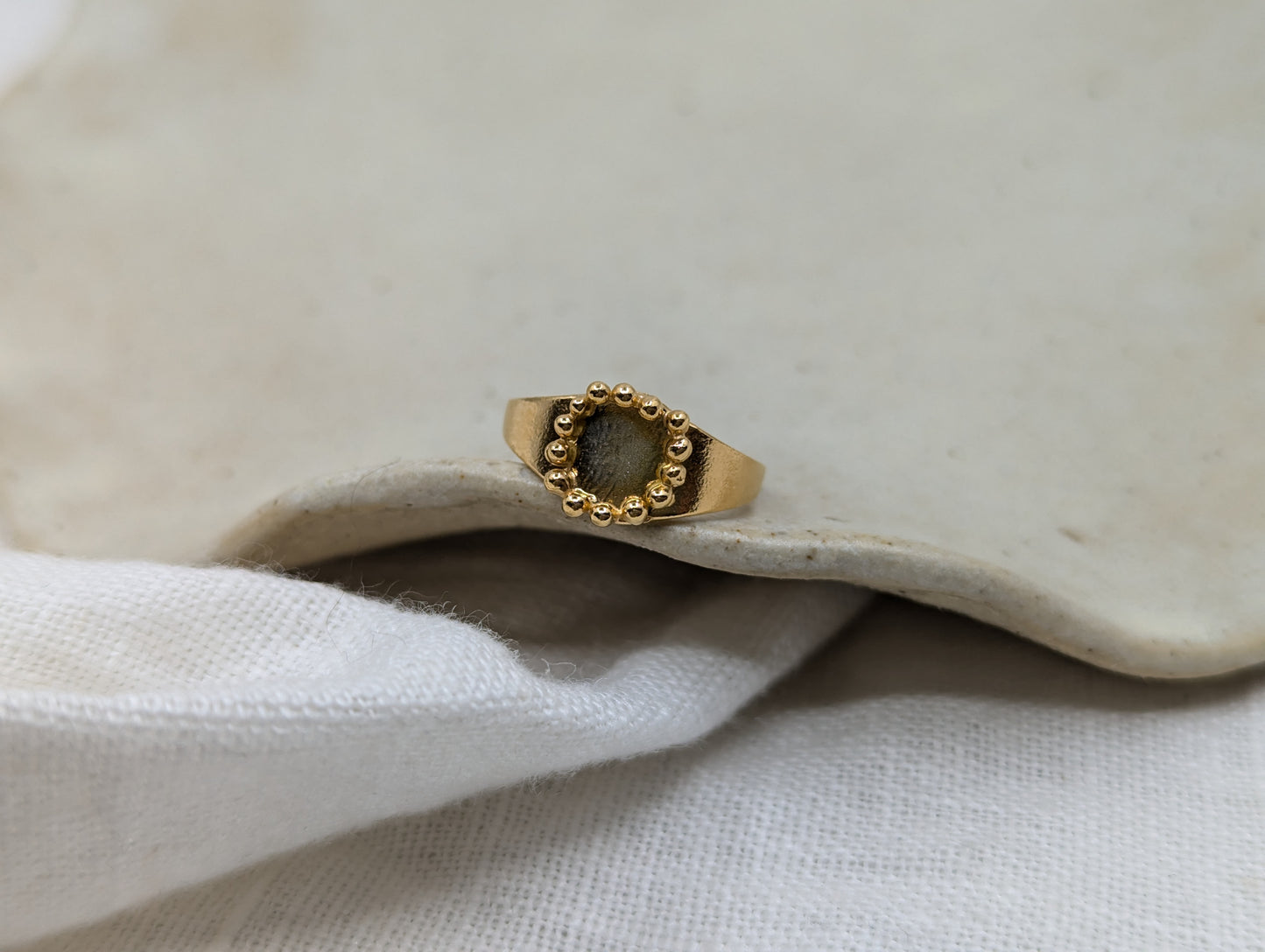 One-of-a-kind! A beautiful and understated take on a Solitaire engagement ring. The organic setting allows the hexagonal faceted Salt and...